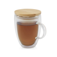 Стеклянная кружка Leona объемом 350 мл с бамбуковой крышкой - прозрачный
