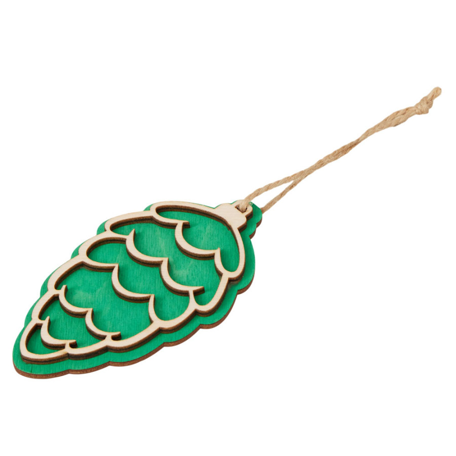 Стильная и минималистичная подвеска в форме шишка, выполненная из натуральной березовой фанеры. Лёгкий и экологичный материал придаёт изделию естественную текстуру и тёплую атмосферу.