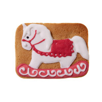 Состав: сливочное масло 82%, сахар, патока, мука, меланж (сухой яичный порошок), имбирь сушеный порошок, корица, сода, уксус пищевой столовый, краситель Азорубин, тартаразин