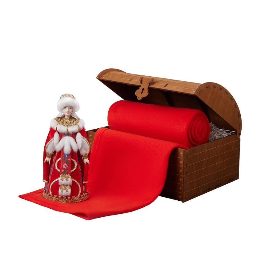 | Материал: | кукла- фарфор/текстиль, плед- флис 100% полиэстер, сундук- дерево |