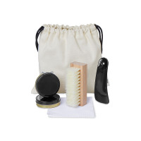 Чистая и ухоженная обувь — в одном стильном наборе. Внутри хлопкового мешочка с завязками можно найти всё для аккуратного ухода: прозрачный и чёрный крем для обновления внешнего вида обуви, щётку для их нанесения, салфетку из микрофибры для деликатной очистки и удобную ложку для обуви. Набор очень удобно брать с собой, при этом в нем есть все необходимое, чтобы обувь оставалась чистой и ухоженной в любой ситуации.