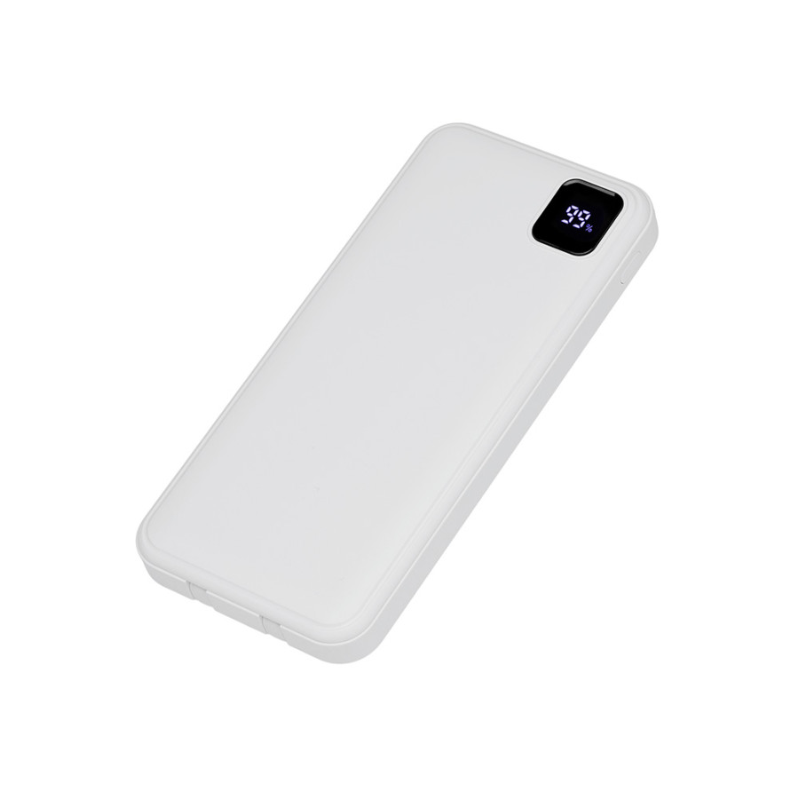 Удобный внешний аккумулятор с встроенными кабелями USB-C и Lightning — ваш надежный партнер в путешествиях, на встречах и в повседневных задачах. Цифровой дисплей в реальном времени показывает точный остаток заряда, а компактные габариты делают его таким же удобным, как смартфон. Прочный корпус из переработанного АБС-пластика и емкость 10000 мАч обеспечивают долгую работу даже при интенсивном использовании. Идеальный выбор для тех, кто ценит комфорт и функциональность в одном устройстве. Продуманная упаковка: для открытия просто потяните за язычок, и появится гаджет с нанесением.