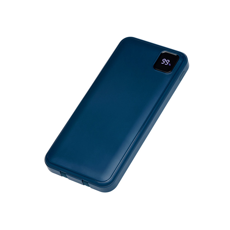 Удобный внешний аккумулятор с встроенными кабелями USB-C и Lightning — ваш надежный партнер в путешествиях, на встречах и в повседневных задачах. Цифровой дисплей в реальном времени показывает точный остаток заряда, а компактные габариты делают его таким же удобным, как смартфон. Прочный корпус из переработанного АБС-пластика и емкость 10000 мАч обеспечивают долгую работу даже при интенсивном использовании. Идеальный выбор для тех, кто ценит комфорт и функциональность в одном устройстве. Продуманная упаковка: для открытия просто потяните за язычок, и появится гаджет с нанесением.