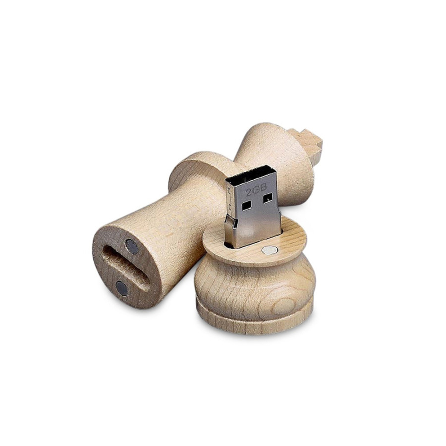 Флеш-накопитель в виде шахматной фигуры Ферзь, объем памяти USB3 128 Гб. Деревянный корпус.