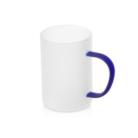 Стеклянная матовая кружка Акцент с цветной ручкой для сублимации, синий