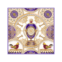 • Золото, алмазы, жемчуг, перья; литье, чеканка, гравировка, выпиловка, эмаль по гильошированному фону.