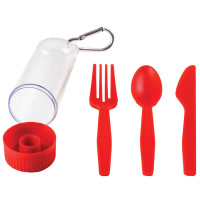 Набор "Pocket": ложка, вилка, нож в футляре с карабином, красный, 4, 2х15см, пластик