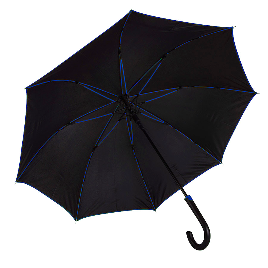 Зонт-трость "Back to black", полуавтомат, 100% полиэстер, черный с синим