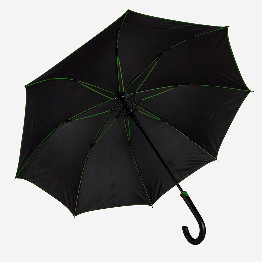 Зонт-трость "Back to black", полуавтомат, 100% полиэстер, черный с зеленым