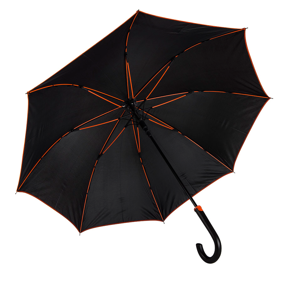 Зонт-трость "Back to black", полуавтомат, 100% полиэстер, черный с оранжевым
