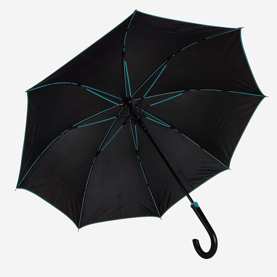 Зонт-трость "Back to black", полуавтомат, 100% полиэстер, черный с голубым