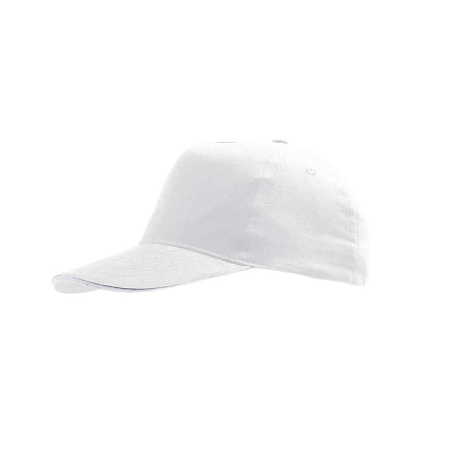 Бейсболка без шва на лбу, 5 клиньев, 4 обшивных люверса, жесткий козырек, застежка-липучка.
