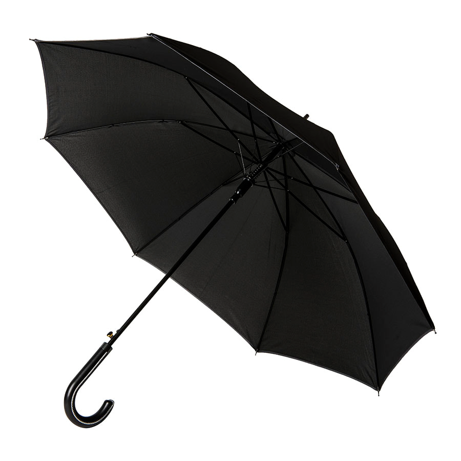 Зонт-трость OXFORD с ручкой из искусственной кожи, чёрный, полуавтомат, 100% полиэстер