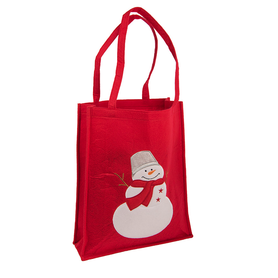 Сумка "СНЕГОВИК" с аппликацией, красный, 40*33*9 см, войлок, шелкография