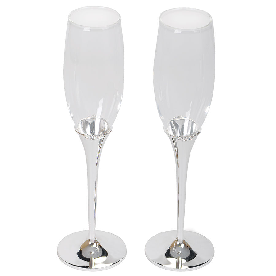 Бокалы для шампанского "Crystal" (2шт), D=6, 8см, Н=25, 2см, стекло, посеребренный металл, лаковое покр