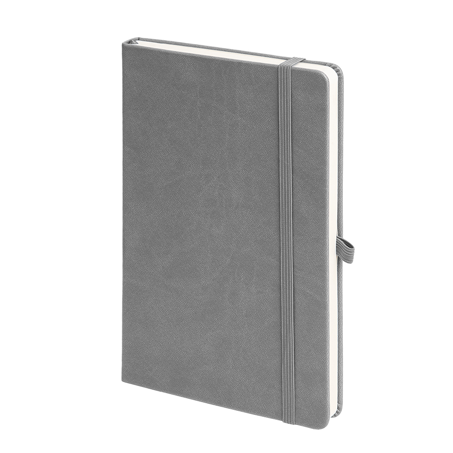 Бизнес-блокнот "Justy", 130*210 мм, серый, твердая обложка, резинка 7 мм, блок-линейка