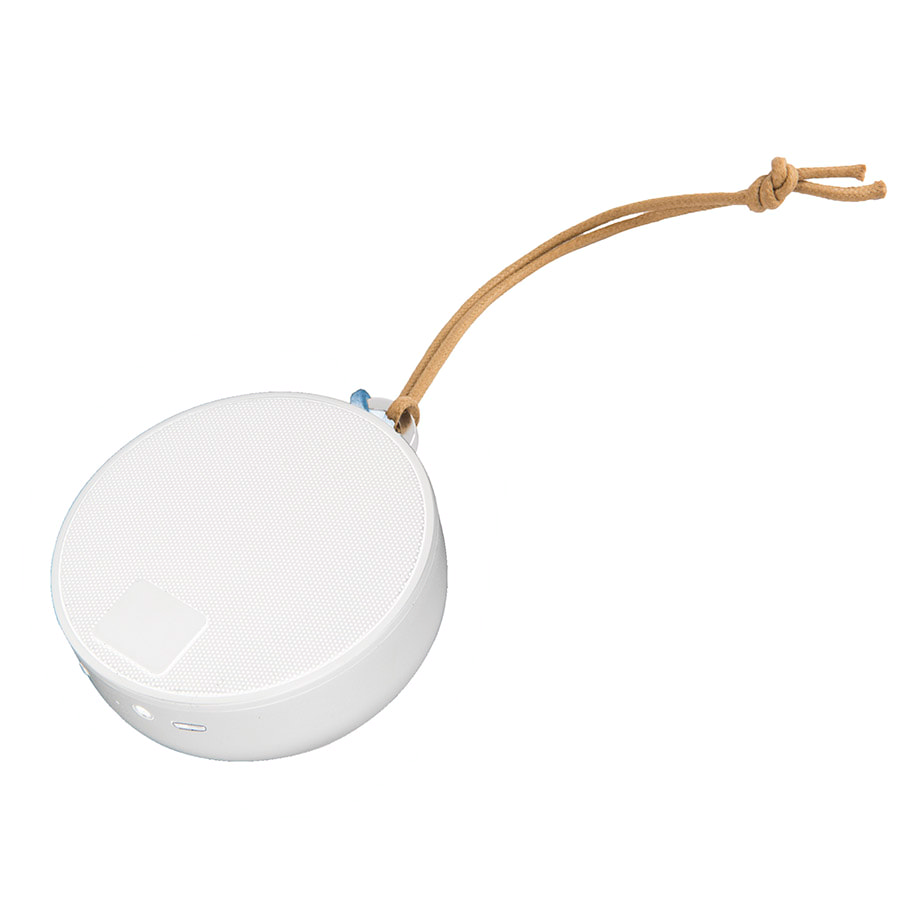 Колонка с хорошим звуком, небольшими размерами в классических цветах. Шнурок «под кожу» не только служит прекрасным декоративным элементом, но и позволяет подвесить колонку.