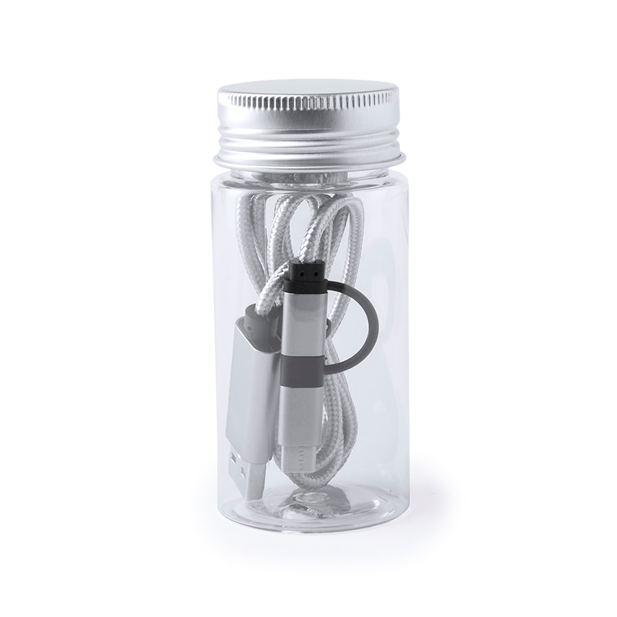 Универсальный зарядный кабель в оригинальном оформлении, упакован в пластиковую прозрачную баночку с завинчивающейся крышкой.