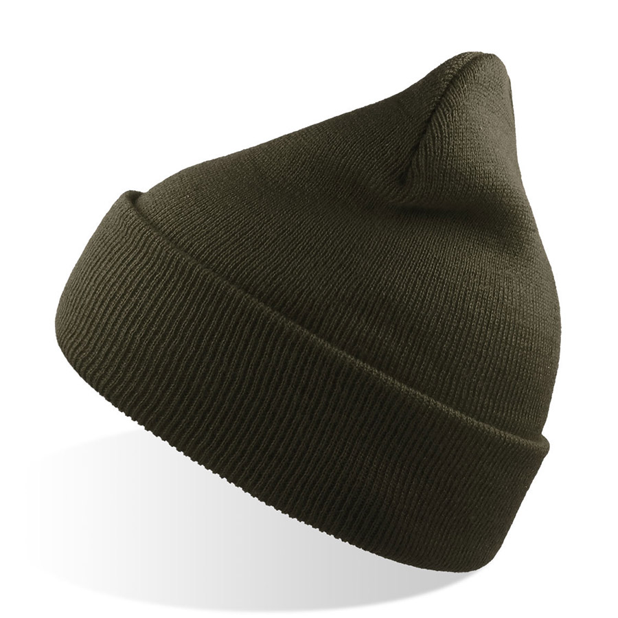 Шапка вязаная двойная "Wind", с отворотом_оливковый, 100% акрил