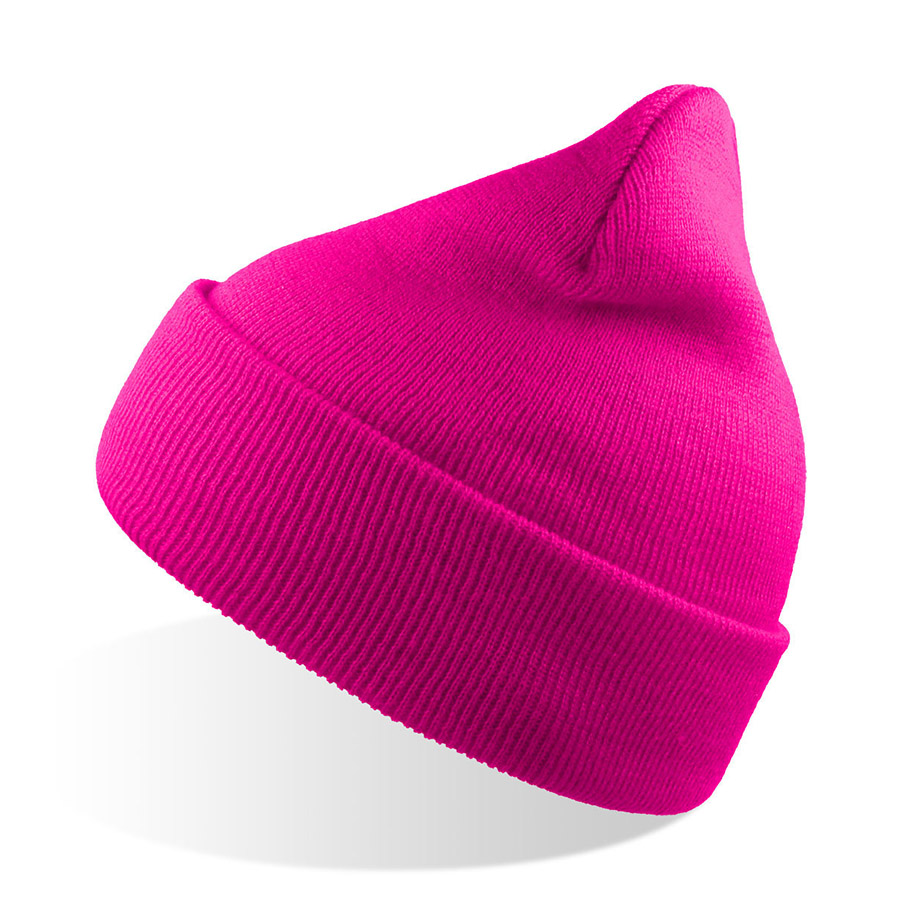 Шапка вязаная двойная "Wind", с отворотом_розовый неон, 100% акрил