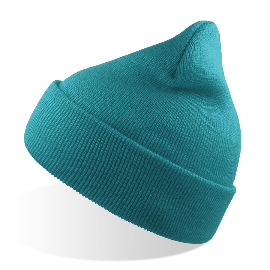Шапка вязаная двойная "Wind", с отворотом_бирюзовый, 100% акрил