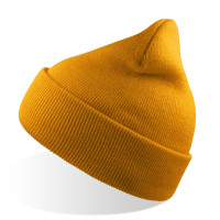 Шапка вязаная двойная "Wind", с отворотом_горчичный, 100% акрил