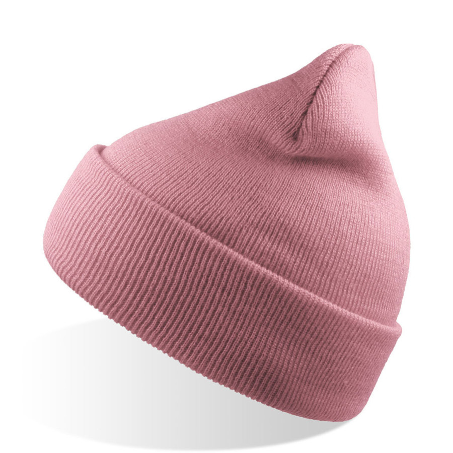 Шапка вязаная двойная "Wind", с отворотом_розовый, 100% акрил
