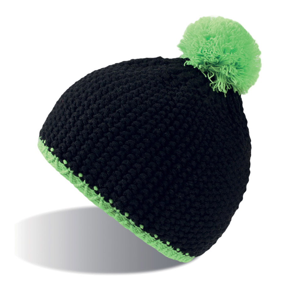 Шапка "PEAK", черный/зеленый неон, верх: 100% акрил, подкладка: 100% полиэстер
