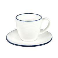 Чайная пара SEAWAVE выполнена в классическом нежном дизайне. Элегантное сочетание белой посуды с синим кантом всеми давно любимо. Волнообразное покрытие чашки, похожее на рябь на поверхности воды, и подарило название этому комплекту – «морская волна».