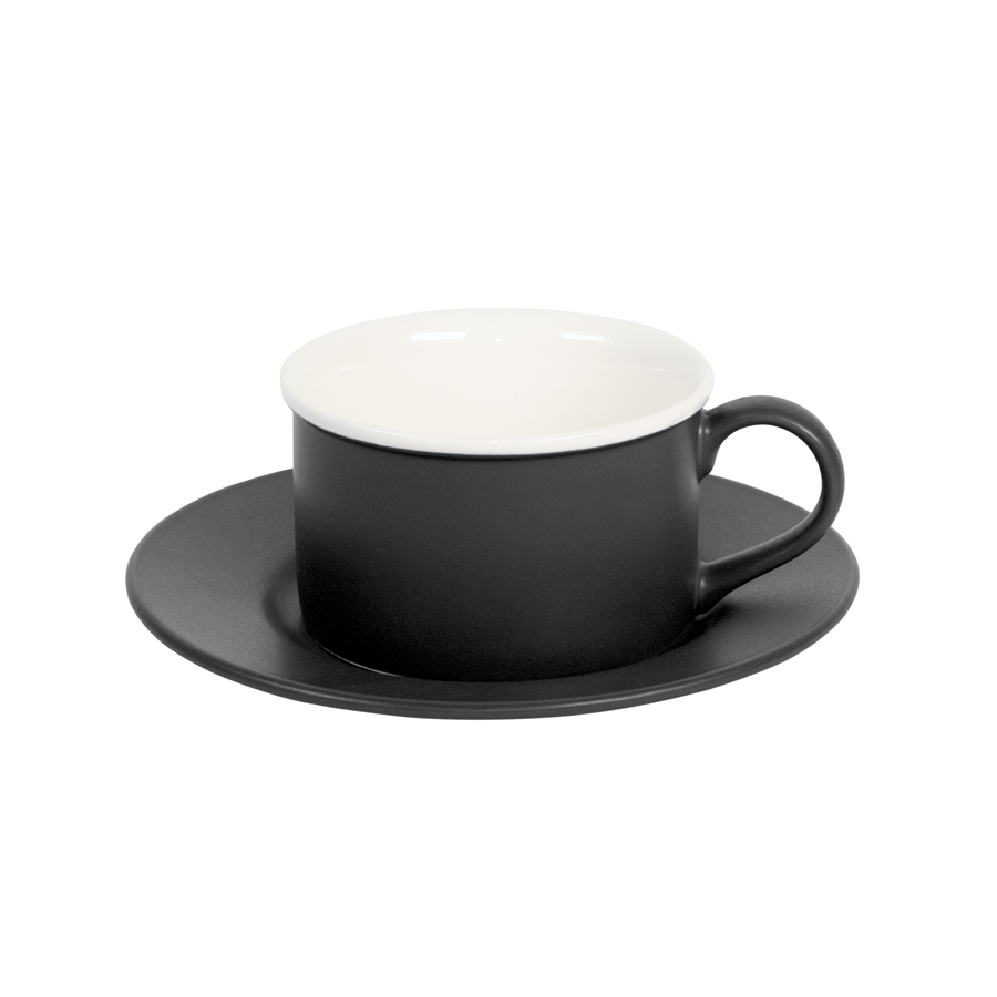 Чайная пара ICE CREAM, черный с белым кантом, 200 мл, фарфор