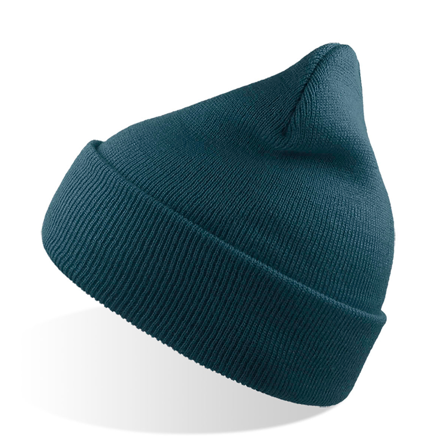 Шапка вязаная двойная "Wind", с отворотом_сине-зеленый, 100% акрил