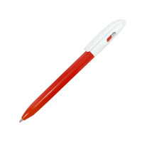 Ручка обтекаемой формы с поворотным механизмом и оригинальной деталью: когда стержень в нерабочем положении, цветная внутренняя кнопка полностью закрывает окошко в верхней части ручки, а когда стержень выдвинут - окошко наполовину открыто.