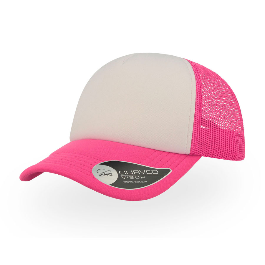 Бейсболка "RAPPER", 5 клиньев, пластиковая застежка, розовый неон с белым; 100% полиэстер, 80 г/м2