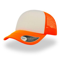 Бейсболка "RAPPER", 5 клиньев, пластиковая застежка, оранжевый неон с белым; 100% полиэстер, 80 г/м2