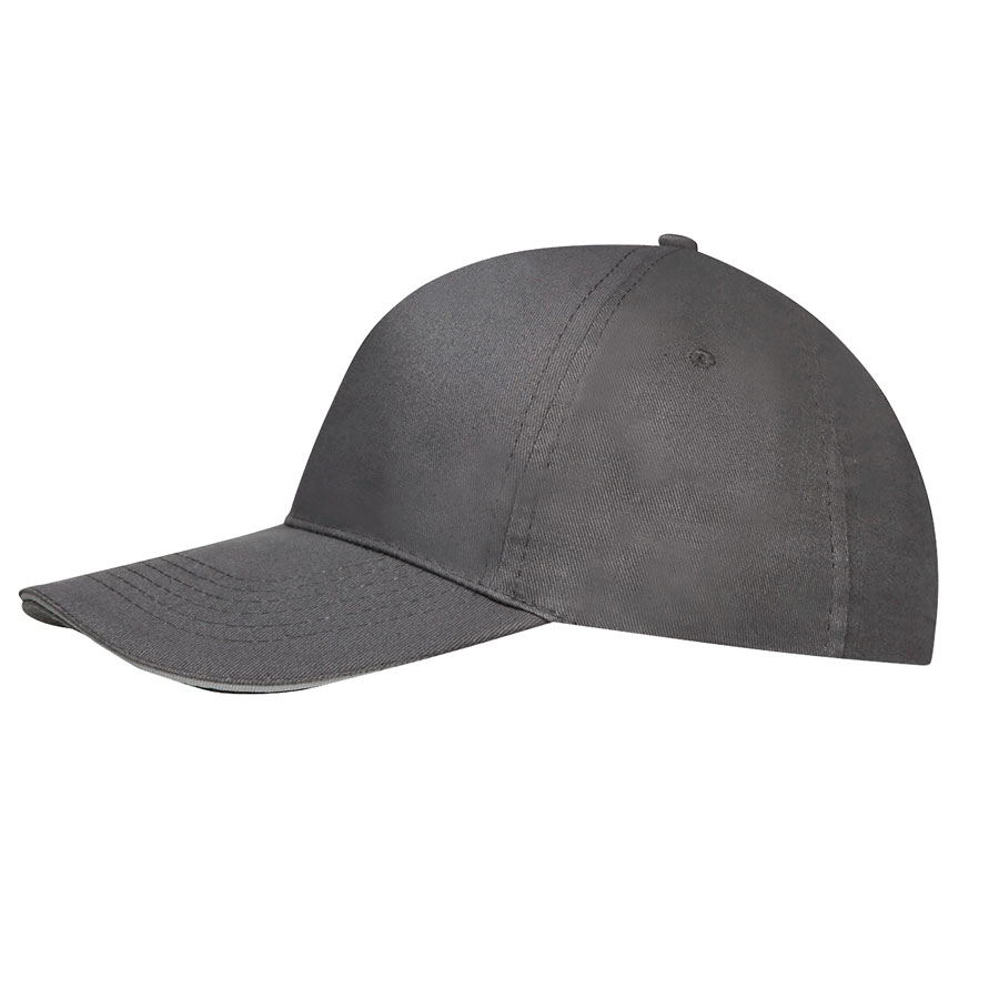Бейсболка "SUNNY", 5 клиньев, застежка на липучке, т. -серый/с. серый, 100% хлопок, плотность 180 г/м2