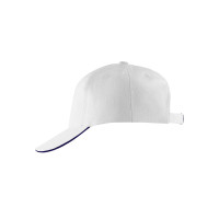 Бейсболка "LONG BEACH", 5 клиньев, метал. застежка, белый/т. синий, 100% хлопок, плотность 260 г/м2
