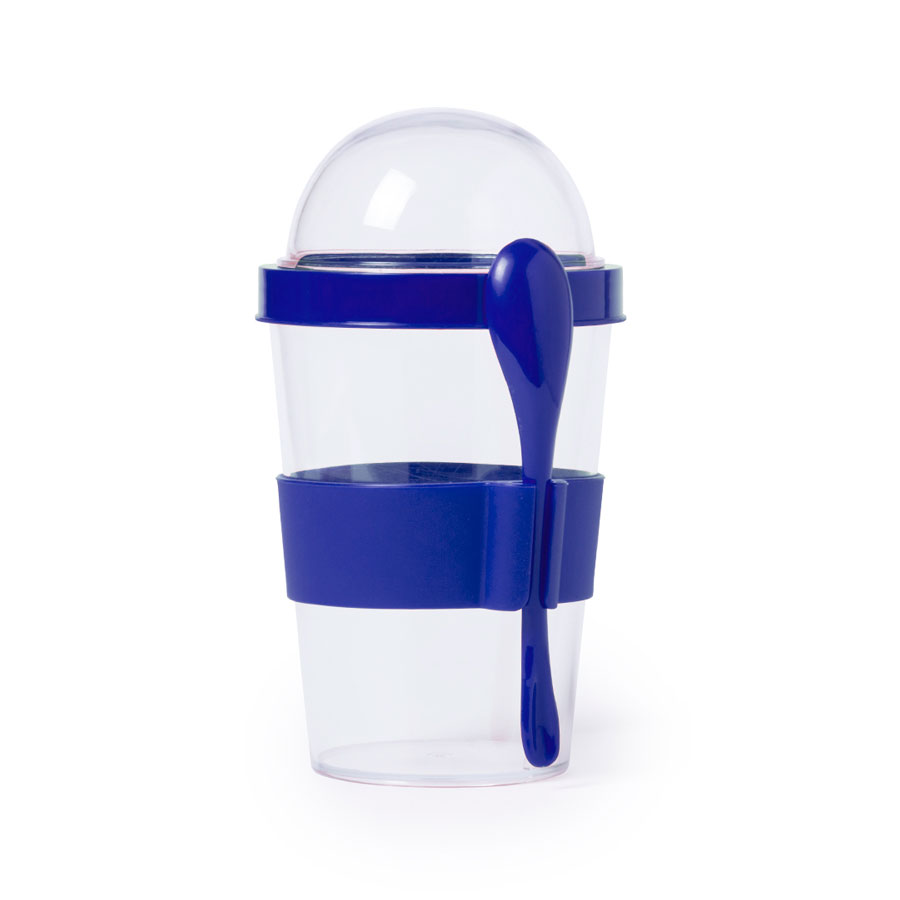 Контейнер для еды YOPLAT с ложкой, синий, 420 мл, 16, 3х9см, пластик