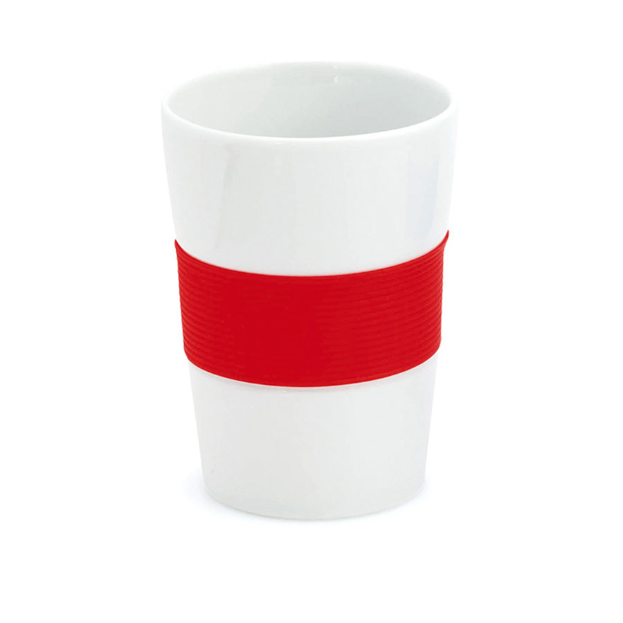 Стакан NELO, белый с красным, 350мл, 11, 2х8см, тонкая керамика, силикон