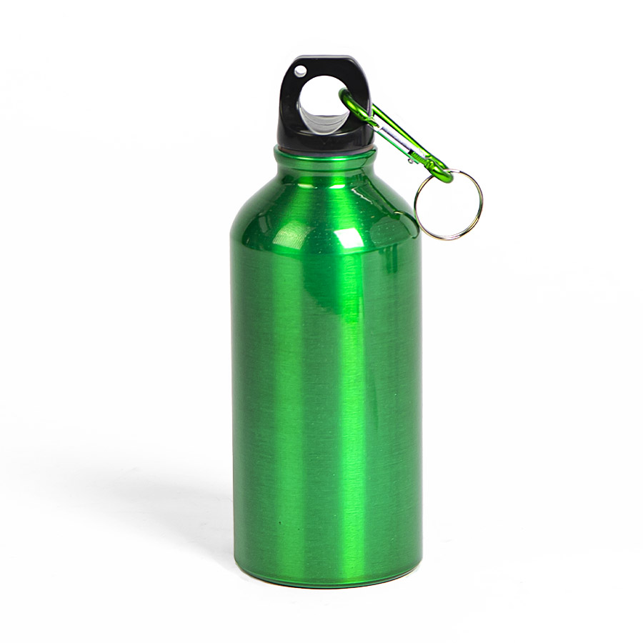 Бутылка для воды "Mento-1", алюминиевая, с карабином, 400 мл. , зеленый