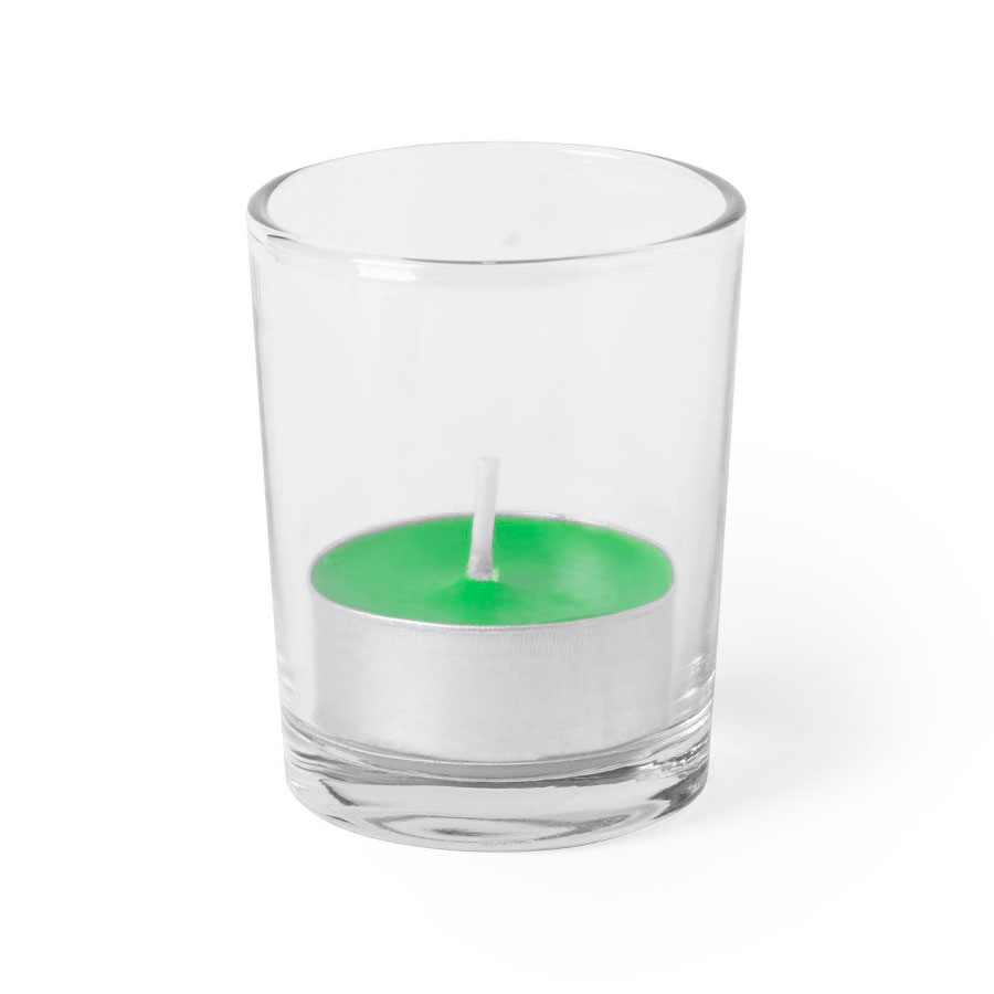 Свеча с ароматом яблока в стеклянном стаканчике.