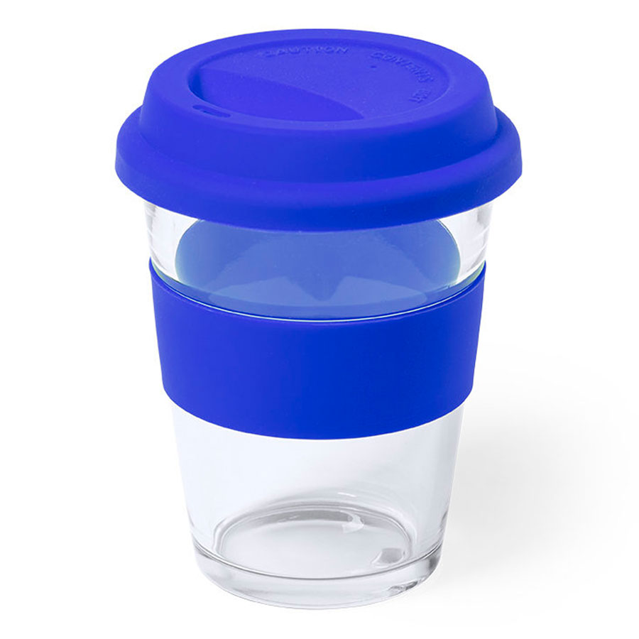 Стакан DURNOX с силиконовой крышкой, прозрачный с синим, 350мл, 12, 4х9, 5см, стекло, силикон