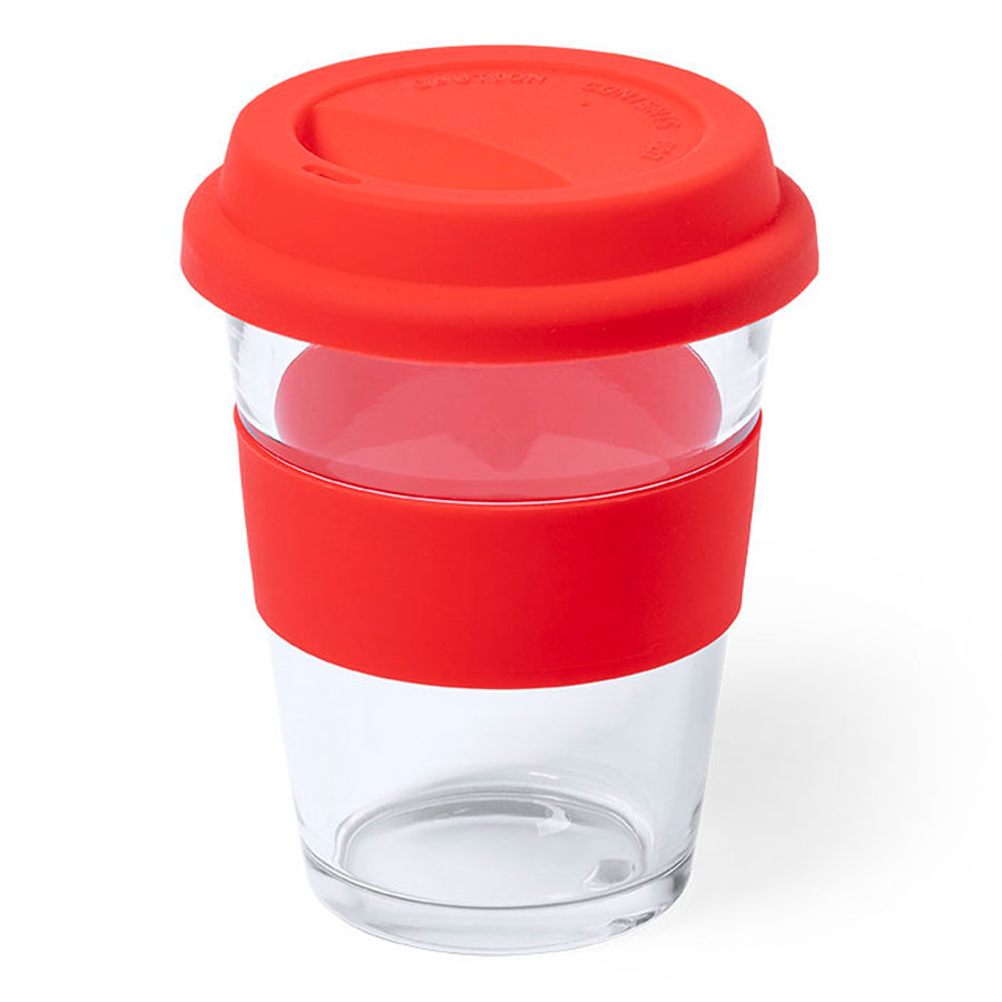 Стакан DURNOX с силиконовой крышкой, прозрачный с красным, 350мл, 12, 4х9, 5см, стекло, силикон