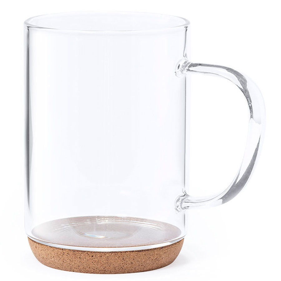 Кружка изготовлена из боросиликатного стекла, а донышко - из пробкового дерева.