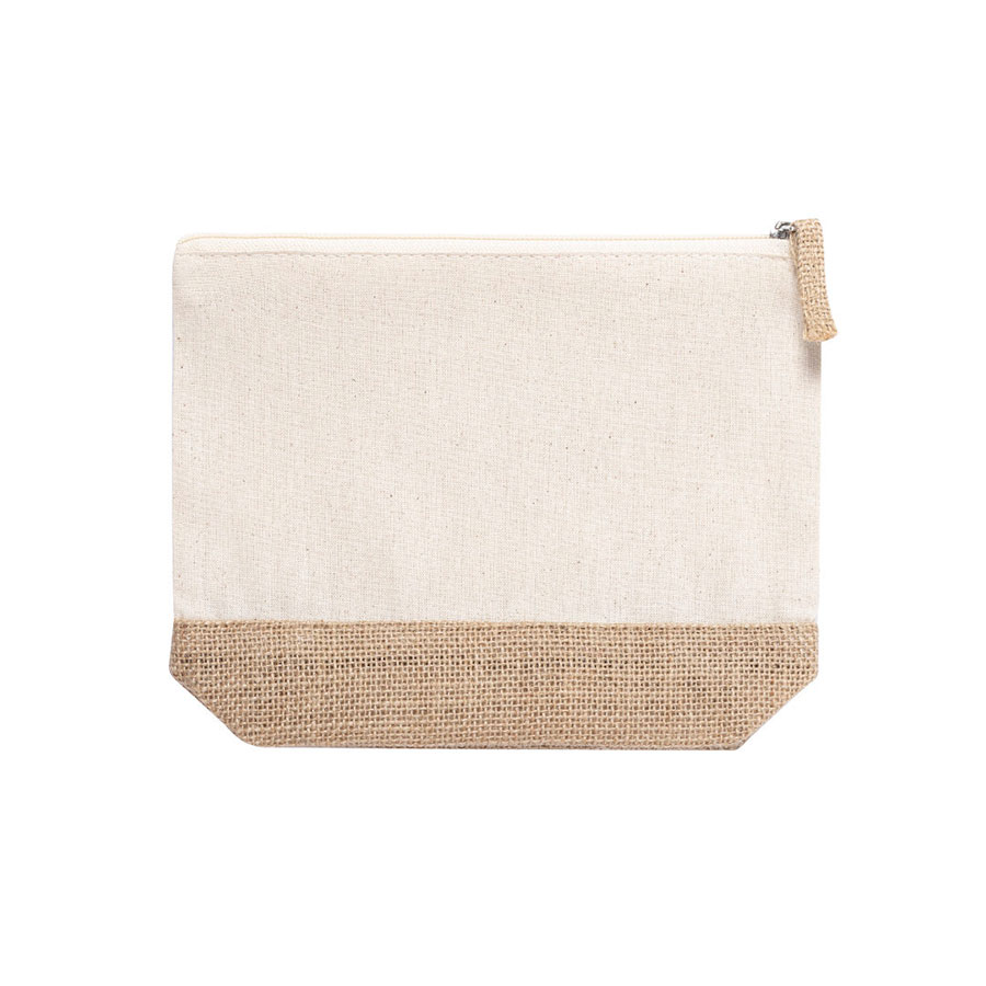Косметичка из ламинированного джута и натурального хлопка. С застежкой-молнией и джутовым пулером.