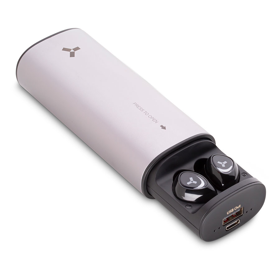 Беспроводные наушники с пауэрбанком 5000 мАч ACCESSTYLE TANGERINE TWS, серебристый