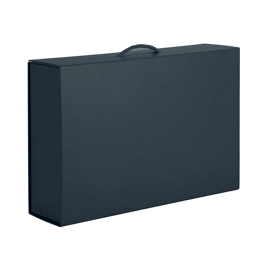 Коробка складная подарочная с ручкой, чёрный, кашированный картон, матовая ламинация.