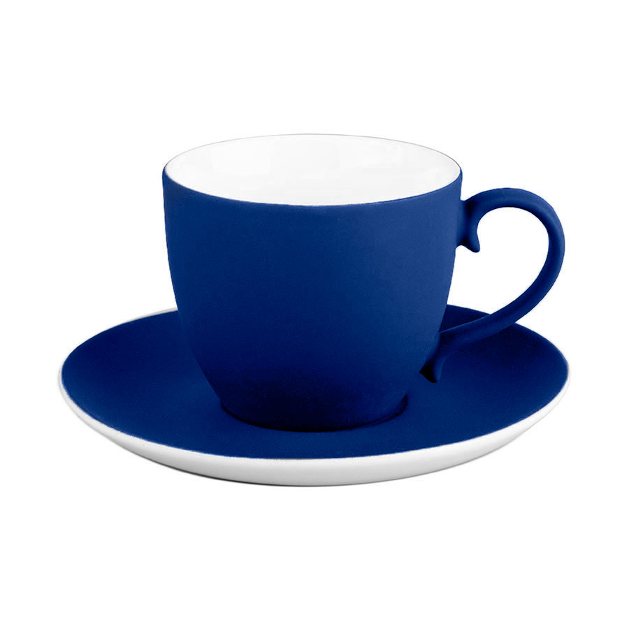 Чайная пара из фарфора с прорезиненным покрытием soft-touchЧашка классической формы и удобное глубокое блюдце