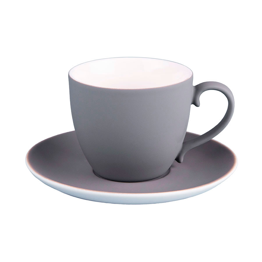 Чайная пара из фарфора с прорезиненным покрытием soft-touchЧашка классической формы и удобное глубокое блюдце