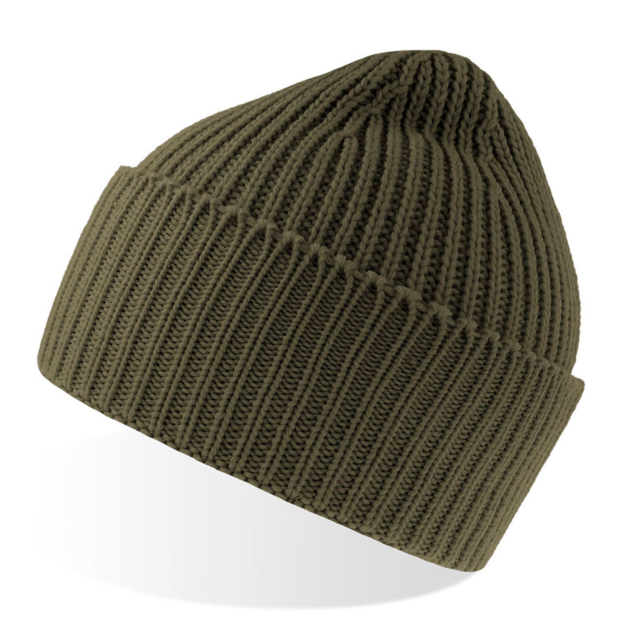 Шапка OAK, оливковый, с отворотом, из пряжи Polylana®: 60% перераб. полиэстер, 40% акрил