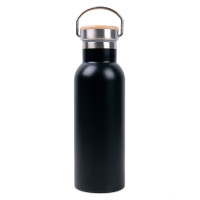 Бутылка для воды DISTILLER, 500мл. черный, нержавеющая сталь, бамбук